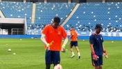 卡扎尔参加赛前训练,网